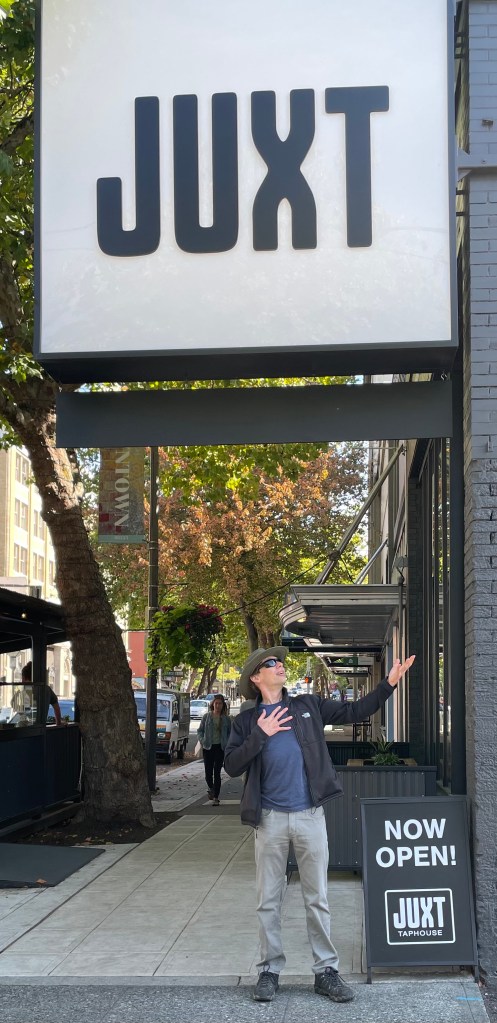 Juxtapose: to place close together or side by side, especially for comparison or contrast. JUXT: a pose.