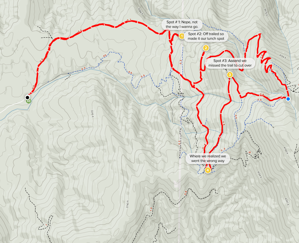 The hike where we ended up on routes that we didn’t mean to end up X 3. Things tend to look a weeee bit different when covered in 4 feet of snow.