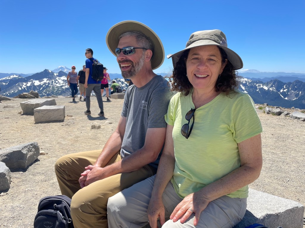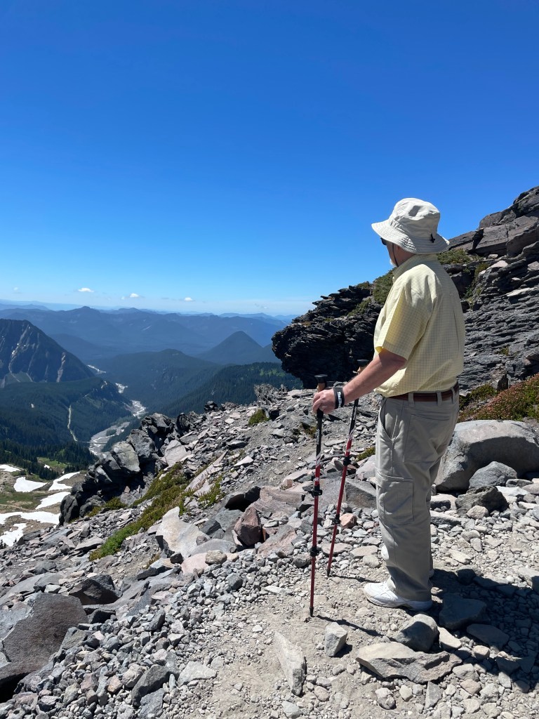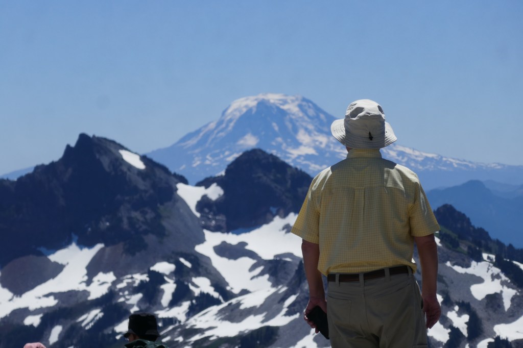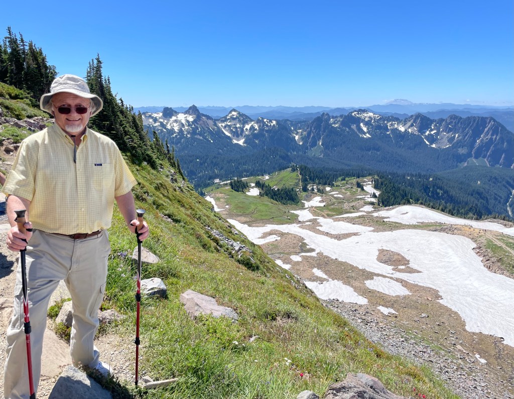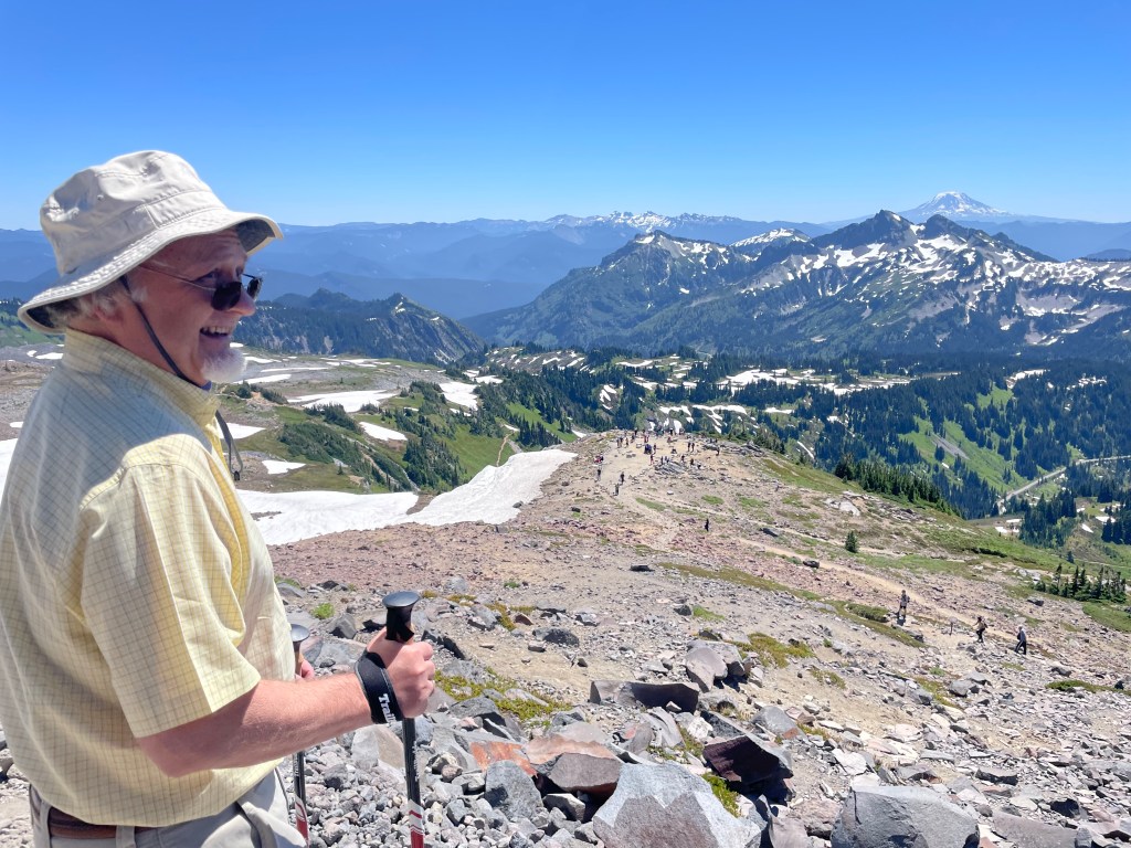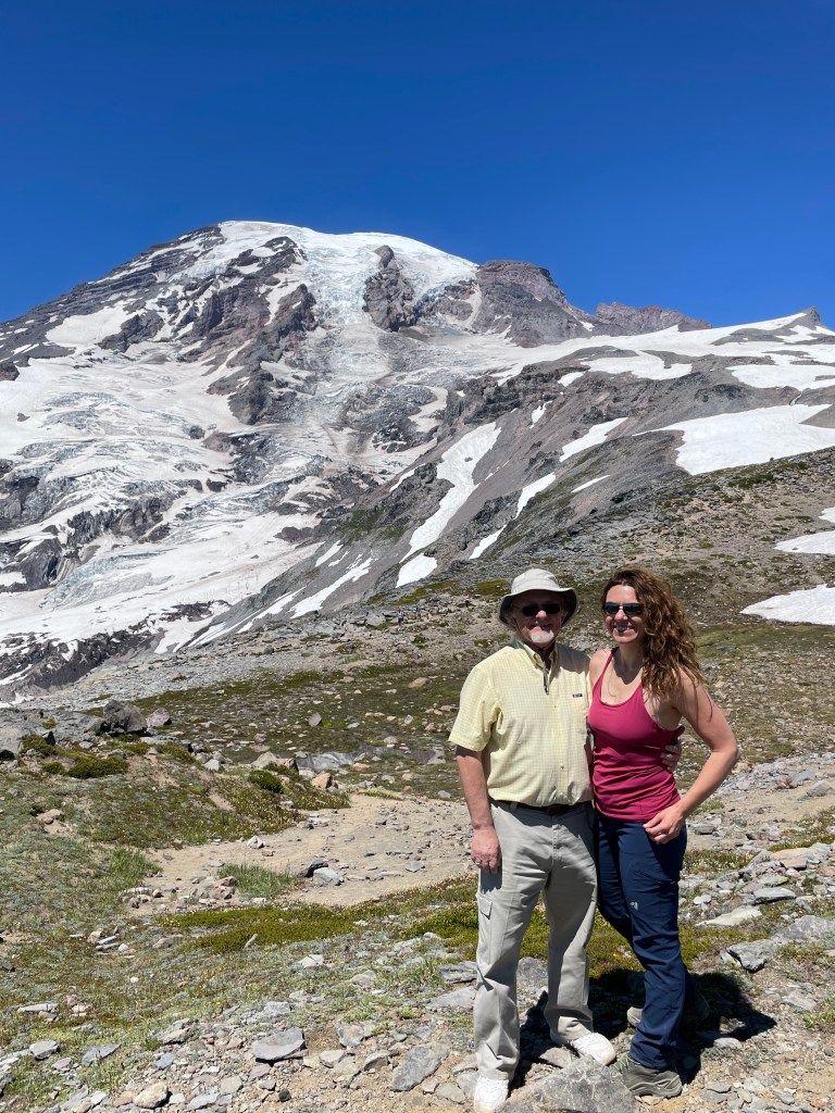 Love you David for taking this pic of Dad and me — of us hiking below Rainier turned moon.