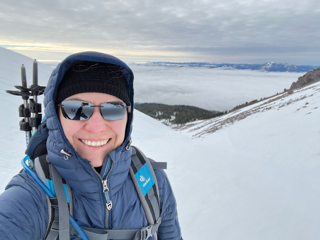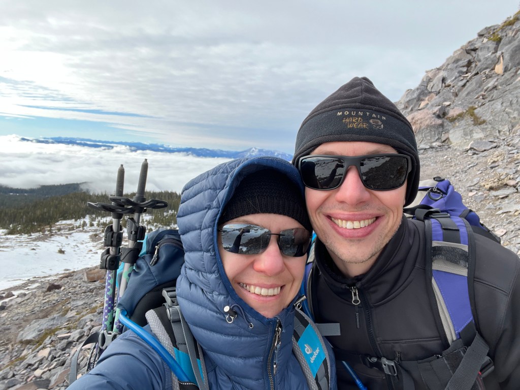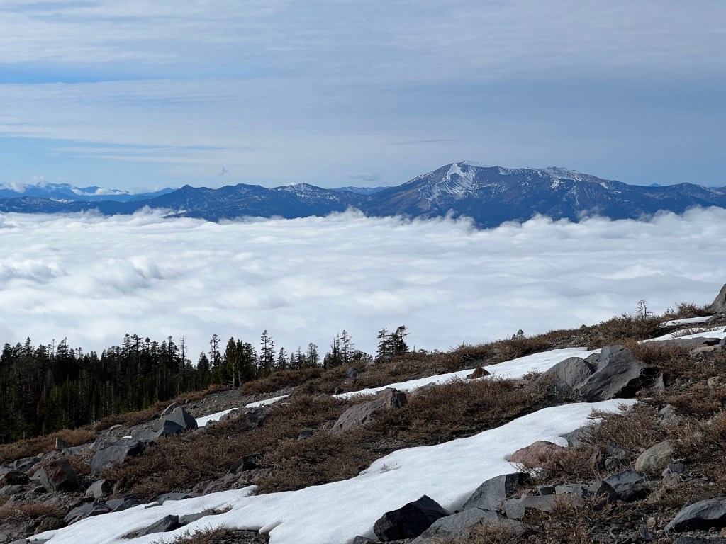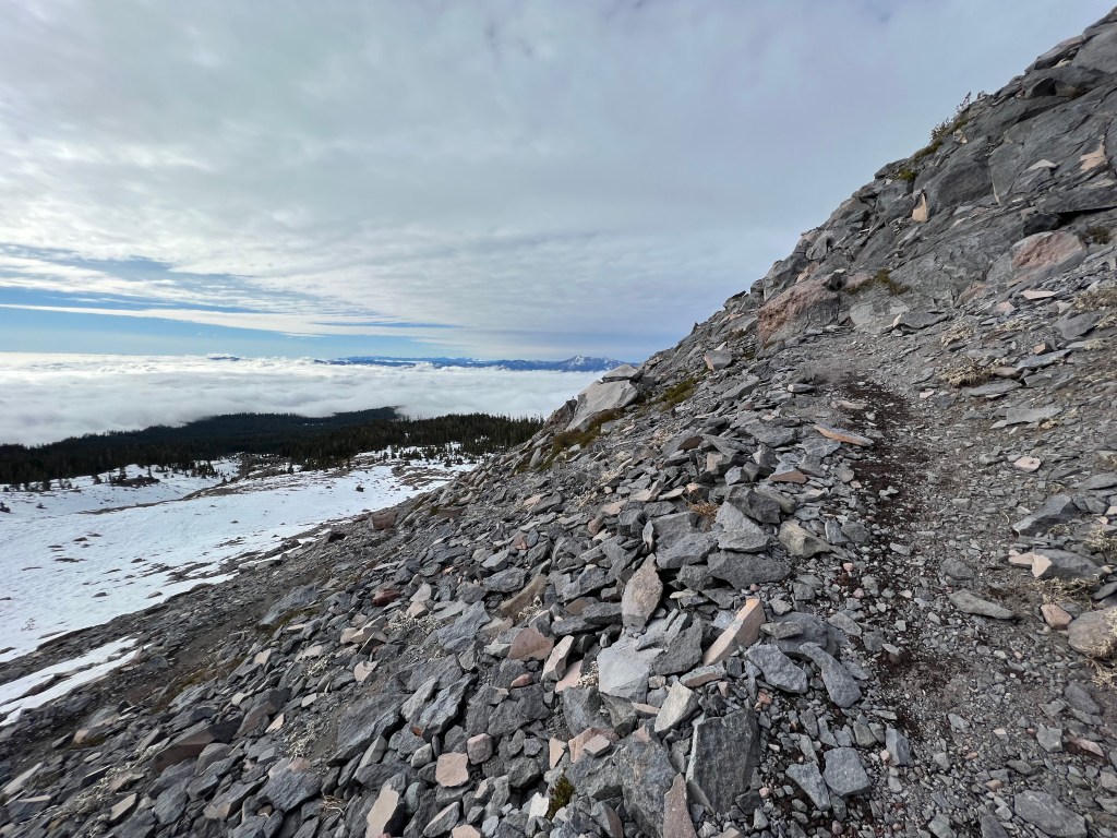 The views were simply fantastic. The clouds below kept inching up higher and higher and we were keeping a close eye on them. We were in this super cool pocket of clouds—basically, we were in a cloud sandwich. Sunset may have been amazing if that sliver of sky stayed open and the sun dropped into it. We don’t mind hiking in the dark, but didn’t want to do trail finding in dense fog and it was still a good 3 more hours until sunset so we didn’t stick around to find out.