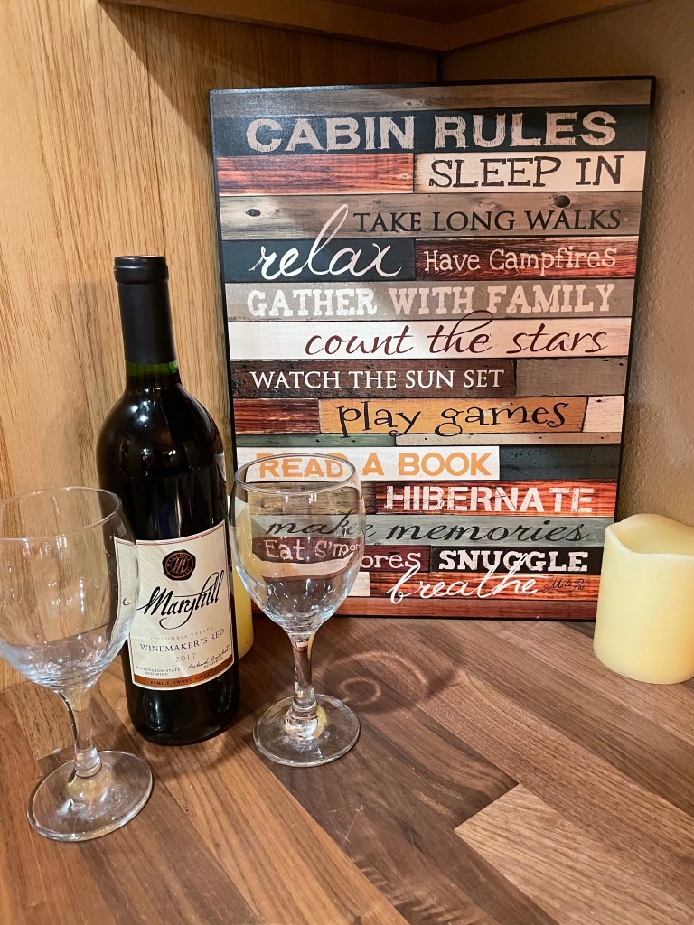 The lid on the hot tub was broken, so yes, it was a bit difficult to take lid off and place back on. The owners have it on order, but as with everything during COVID it’s on backorder. Not mission impossible to remove the lid, but some may not have enough strength to make it happen. The hot tub itself is wonderful and we made use of it the 2nd night. Nice touch on providing bath robes. We did wonder about the lid and how it got broken, but we’re pretty sure it was a gang of angry forest squirrels that got in there and chewed up the inside foam — or perhaps we were much too influenced by listening to Jenny Lawson’s audiobook, Let’s Pretend This Never Happened.