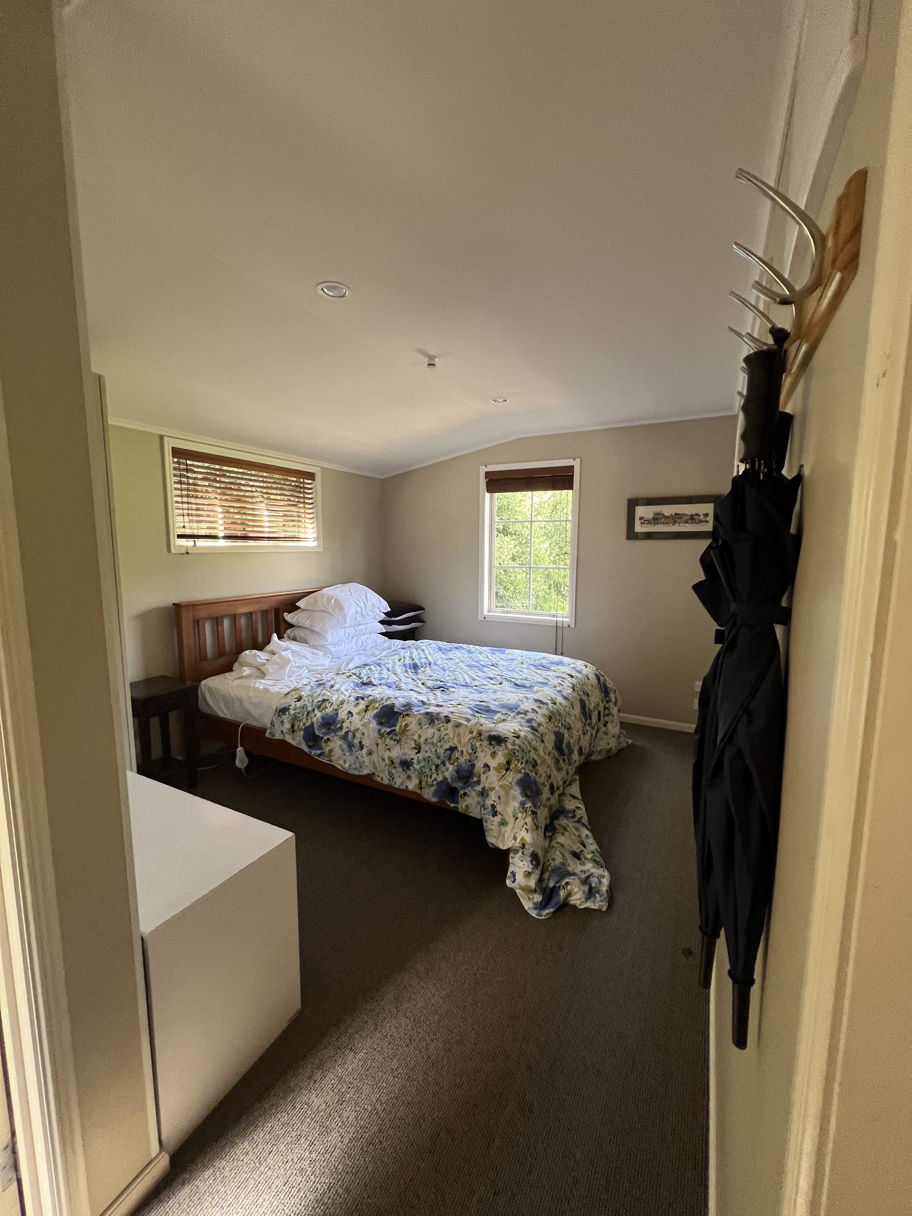 You might wonder why an A/C is even needed in a moderate climate like Glenorchy. The hottest outside air temperature we had was 25℃ (77℉), and most days of our stay topped out noticeably cooler. The problem here is sandflies and window screens—having the former without the latter. Glenorchy has sandflies, and if you open the window they will quickly come in and bite you (we tested this). They’re not that bad here compared to some other South Island locations, but they’re bad enough, and the welts last several weeks. The bugs come in through the windows because there are inexplicably no screens on the windows. (We understand that Kiwis often don’t have screens on their windows. All 4 places we’ve stayed during this trip have lacked them. This is truly inexplicable in a country with sandflies.) You can open the windows when it’s full dark outside, and we did, but this lasts less than 6 hours in early summer. We got the place cool enough over night to be cold even with jackets on in the morning, but by late afternoon it was nonetheless brutally hot inside.