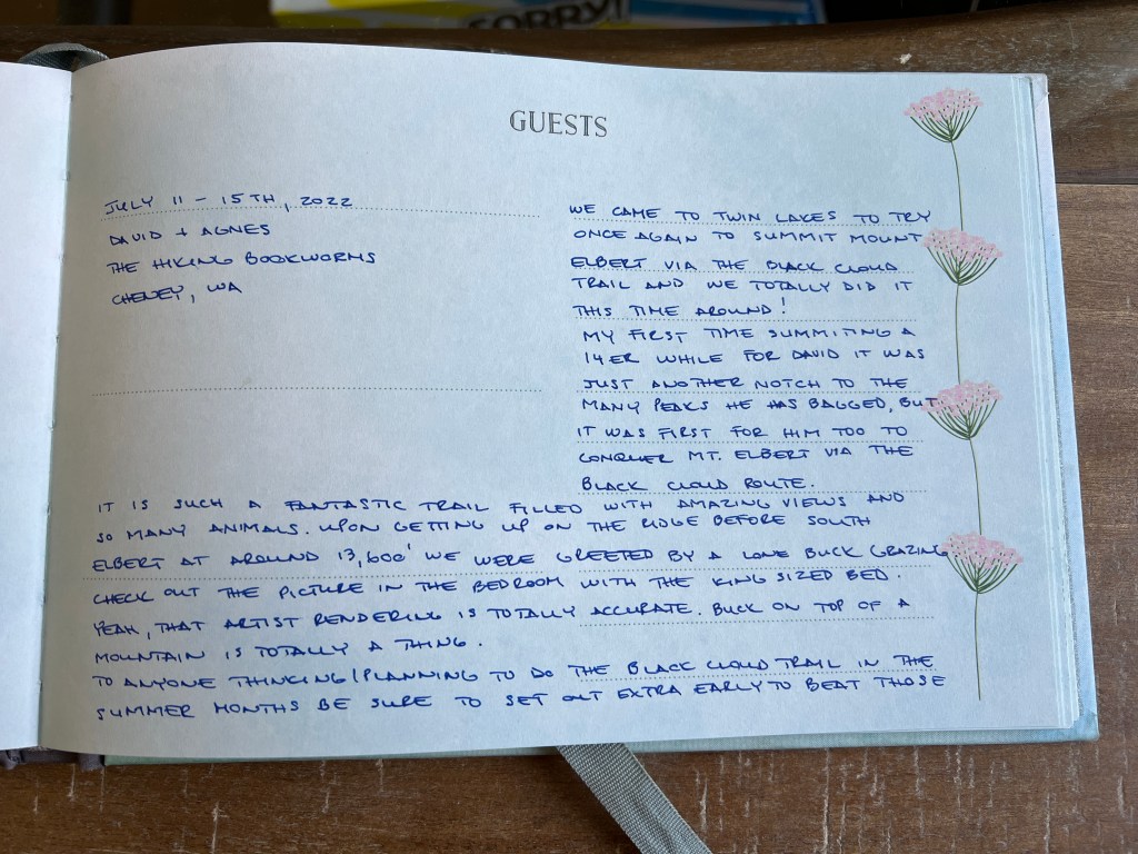 Did we have a great vacation in Twin Lakes? Yes, cause we summited Elbert via the Black Cloud Trail and it was fantastic to be able to stay in the Moose Meadow cabin with awesome views where we could spend a day acclimating to high altitude. Cook up our dinners. Make our lunches. Then rest our weary legs the day after the big hike. But the whole cleaning and how management was handling the situation remained a black cloud over our trip and we constantly had to keep thinking about the negatives.